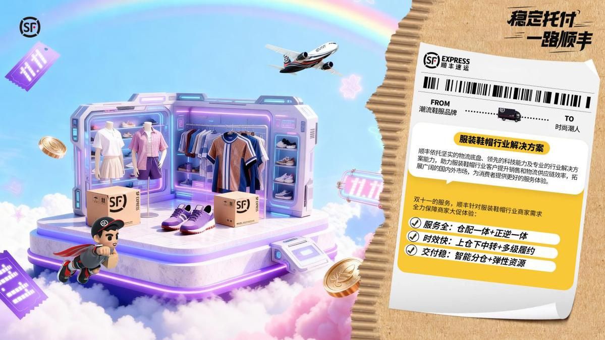 针对销售波动大、退换货集中的特点,顺丰为服装鞋帽行业提供“服务全、时效快、交付稳”三大保障。通过“仓配一体+正逆一体+数字化赋能”实现库存高效管理与退换无缝衔接,依托多级履约与智能分仓响应多波段订单,助力商家提升全渠道效率,为消费者提供“更快、更稳、更省心”的购物体验。